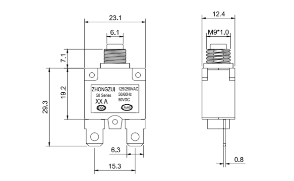 58系列是一種輕巧,單極,按壓后復位的過電流輔助保護器。